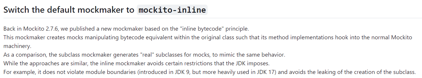 기본적으로 InlineByteBuddyMockMaker를 사용하는 것으로 바뀌었기 때문에
