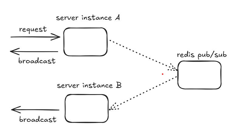 server 인스턴스가 1개라면 broadcasting 로직으로 충분하지만