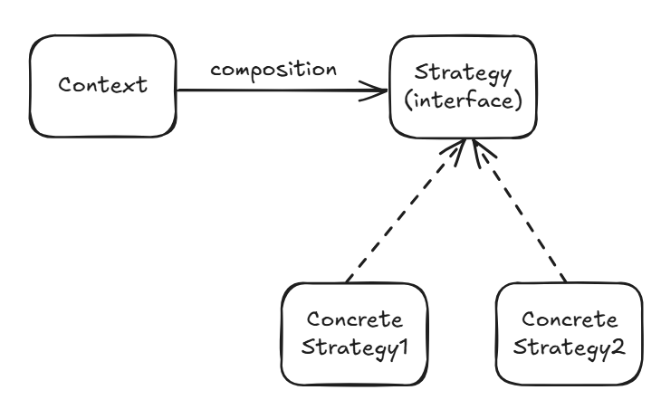 런타임에 알고리즘 전략을 선택해서 객체의 동작을 실시간으로 바뀌도록 할 수 있게 하는 행위 디자인 패턴이다.