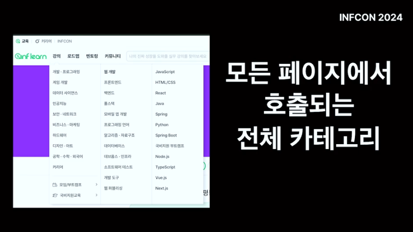 카테고리는 모든 페이지에서 볼 수 있는데 그러다 보니 트래픽량이 많았고
