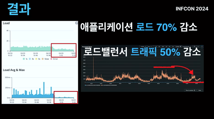 결과적으로 load balancer와 ec2의 트래픽 부하를 모두 줄일 수 있었다.