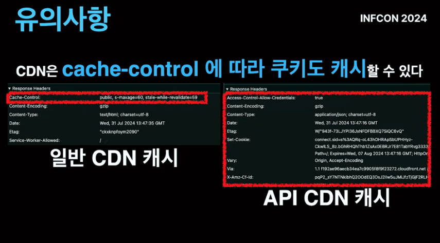 잘 못할 경우 header에 있는 세션 쿠키 정보도 캐싱이 될 수 있다.